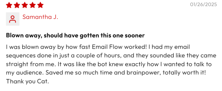 You already know what to say to sell your offers. You just need the structure to say it in a way that makes people want to buy, not unsubscribe. Email Flows Wizard gives you that structure for every type of sequence you need: launches, nurture, post-purchase, abandoned cart, welcome flows, all of it.