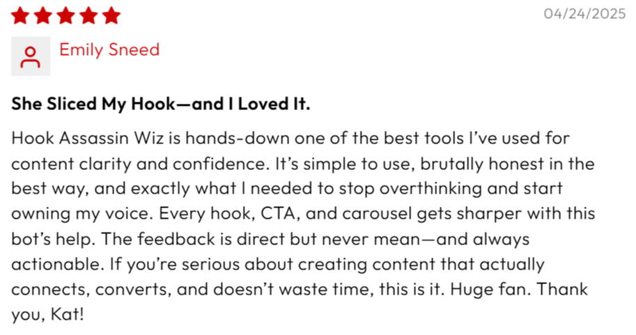 Your content lives or dies in the first seconds. If the hook doesn’t land, the rest never gets seen. Hook Assassin Wiz makes sure your opening line actually earns attention and stops the scroll.